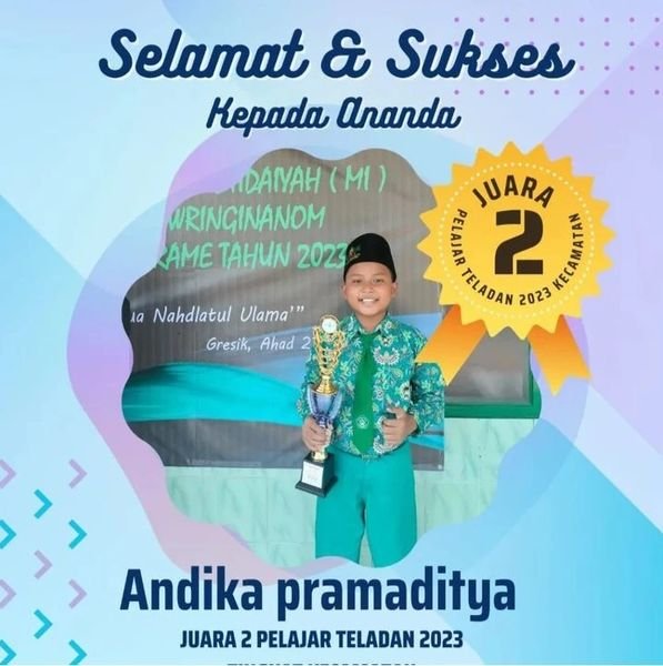 Prestasi yang membanggakan diraih oleh Ananda Andika Pramaditya. Semoga ilmunya manfaat dan menjadi anak Sholih.amin